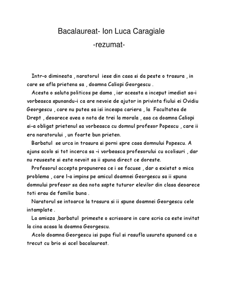 Bacalaureat de i l caragiale povestire. In trasura madam caliopi georgescu o buna prietina. Acest eseu a fost redactat de către echipa liceunet pentru a ți folosi ca suport de studiu dar și ca sursă de inspirație pentru scrierea propriilor tale materiale. Actualizat de anidescoala ro pe 1 martie 2015.