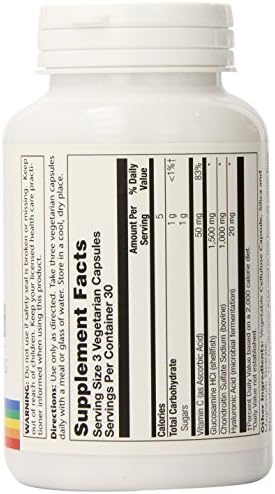 Solaray glucosamine chondroitin hyaluronic acid description 1500 mg 1000 mg 20 mg the hyaluronic acid used in this formula comes from microbial fermentation and vitamin c has been added to help enhance its absorption. Pure by nature glucosamine with chondroitin turmeric mms boswellia joint pain relief supplement 180 count.