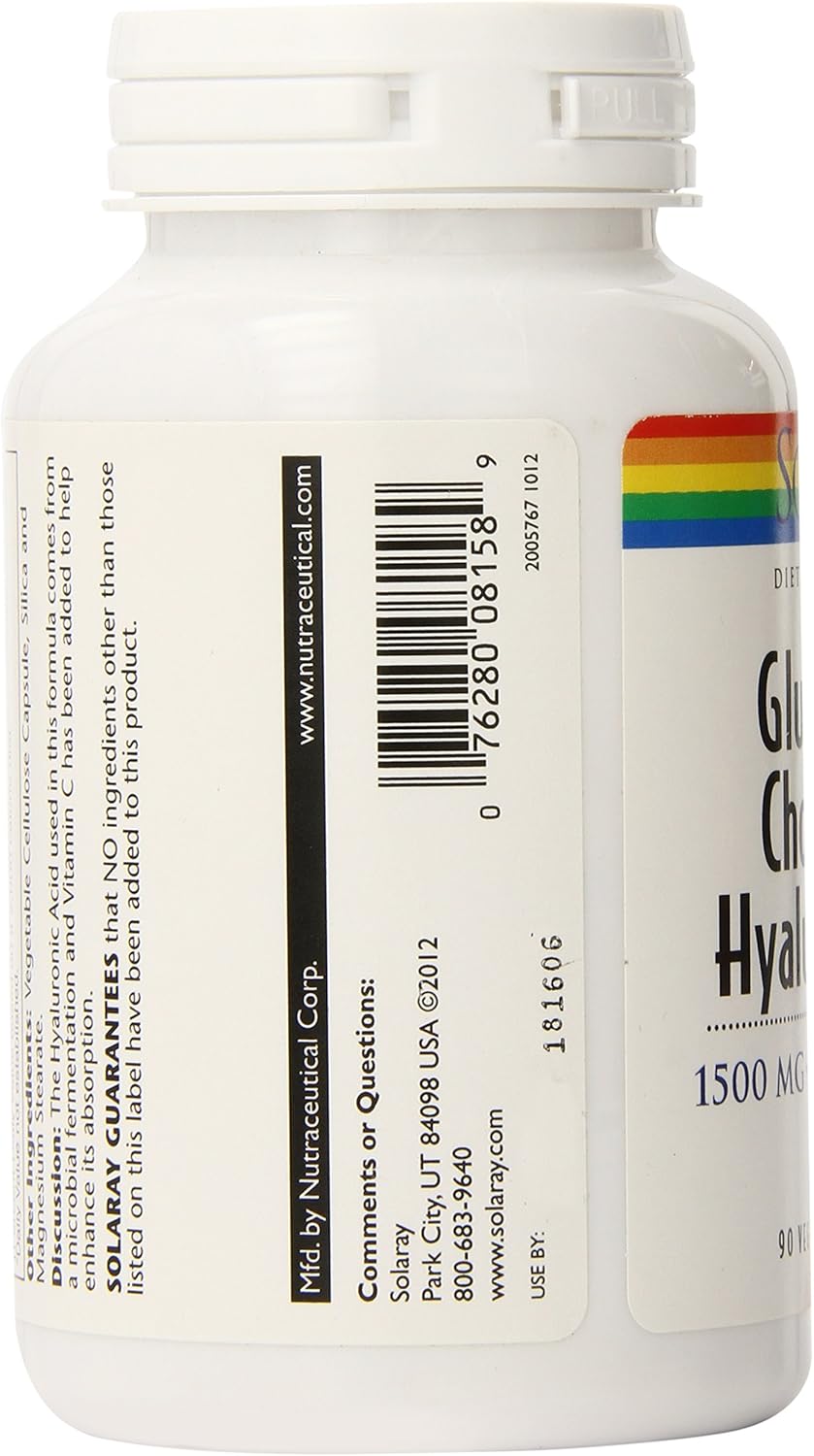 Solaray glucosamine chondroitin and hyaluronic acid 1500mg 1000mg 20mg 90 capsules.