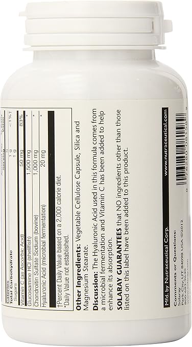 Glucosamine chondroitin hyaluronic acid solaray. This item solaray glucosamine chondroitin and hyaluronic acid 1500mg 1000mg 20mg 90 capsules. Glucosamine chondroitin and hyaluronic acid by solaray 1500mg 1000mg 20mg 90 capsules 34 99 this advanced formula helps to maintain joint lubrication and promotes mobility flexibility and full range of motion. Solgar glucosamine hyaluronic acid condroitin msm shellfish free 120 tablets. Compare with similar items.