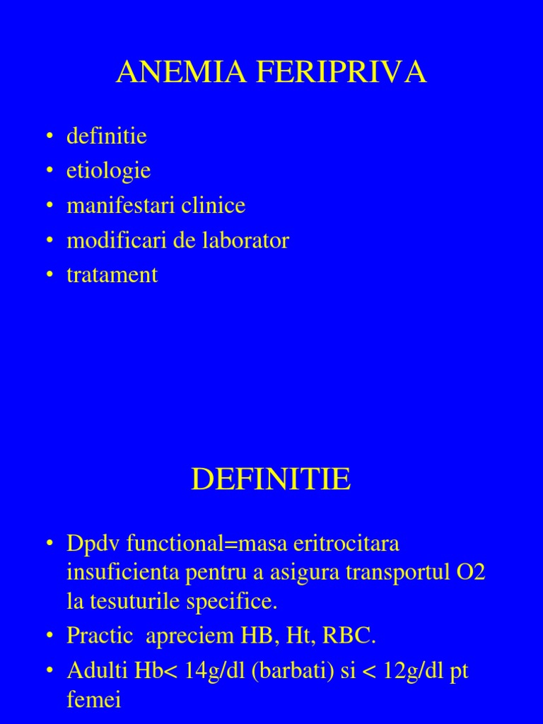 Un nivel scazut de feritina. Hemoglobina scazuta din comunitate.