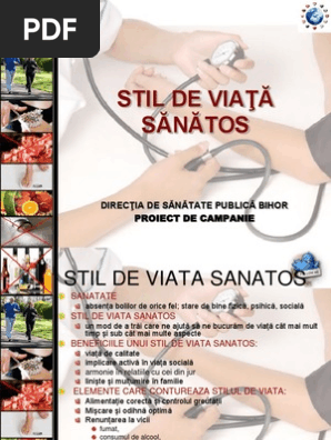 Stil de viata sanatos pdf. însă conceptul de stil de viaţă sănătos este unul complex şi necesită o concentrare a eforturilor noastre asupra depăşirii unor obiceiuri dăunătoare. Multe aspecte ale stării noastre de sănătate sunt afectate de ceea ce facem de ceea ce gândim. La cunostinta ca 50 din totalul cauzelor de decese se datoreaza unui stil de viata nesanatos in care predomina fumatul abuzul de alcool sedentarismul si alimentatia irationala. Regim alimentar echilibrat este esenţial de a nu face abuz măncaţi doar atît cât doriţi dar nu forţat.