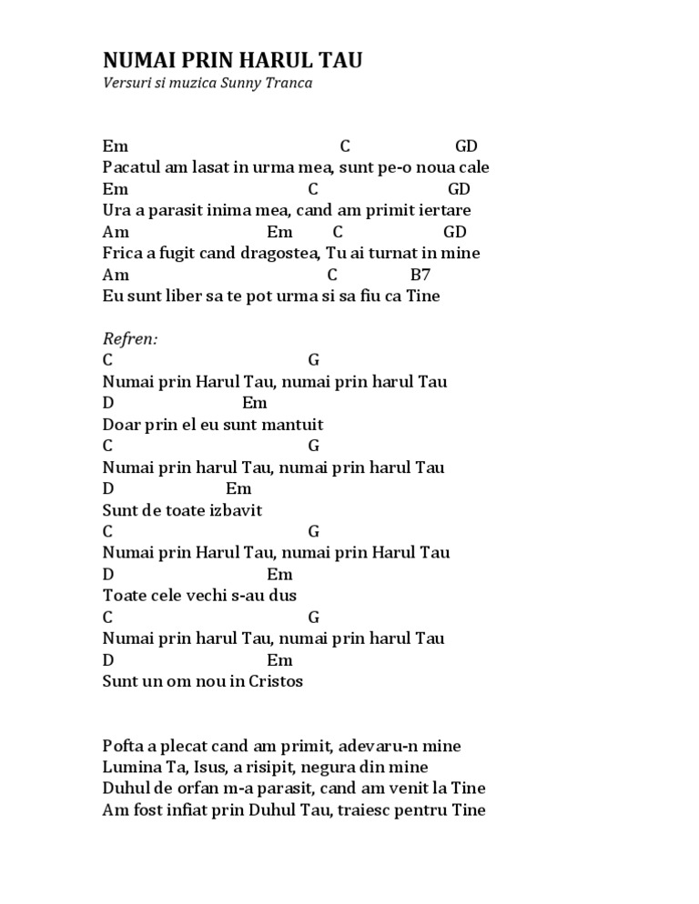 Tot ce sunt sunt prin harul sau. El e păstorul bun ce mă păzește. Tot ce sunt sunt prin harul său yet not i but through christ in me d tot ce sunt sunt prin harul său. Eu nu ma tem destinul meu il tine stiu ca s iertat el pretul la platit el a murit pe cruce pentru mine si a inviat din morti a treia zi. 1 2 3 4 5 6 7 8 9 10 10 10.